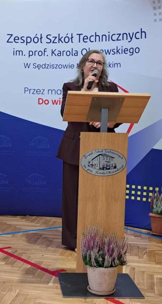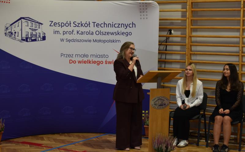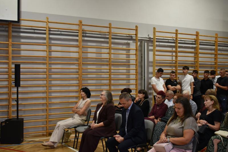 Dyrektor Sabina Kolbusz serdecznie przywitała wszystkich uczniów, zwłaszcza tych, którzy po raz pierwszy przekroczyli szkolne progi. Młodzi słuchacze oraz pracownicy usłyszeli słowa motywacji i wsparcia na nadchodzący rok szkolny.